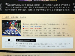 南国ソフトは、ネット対戦している相手の視線やまばたきも利用して相手の手を読むVRテーブルゲーム「the Outer Foxes」を参考展示。視線追跡を行えるヘッドマウント「FOVE」を使用し、プレーヤーの視線やまばたきをVR空間のキャラクターにもリアルタイムで反映させるというもので、相手の視線から作戦を読んで駆け引きするような体験ができる。将来的にはインターネットカフェで本作を体験できるようになる予定という。