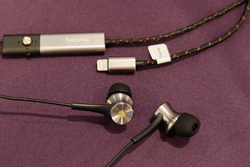 1moreのブースでは、「E1010」「E1008」「E1001」といった従来モデルにくわえ、届いたばかりという新製品のLightning接続対応ノイズキャンセリングイヤホン「E1004」が参考出展された。再生周波数は20Hz〜20kHzで、最大入力は5mW。価格や発売時期などの詳細はまだ未定とのこと。