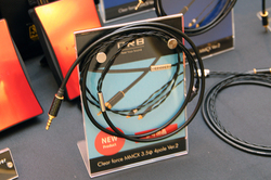 ORBは同社のケーブルシリーズを一斉展開。7月24日発売予定のヘッドホンリケーブル「Clear force」シリーズの3.5mm 4極端子採用モデル(関連ニュース)を参考出展している。