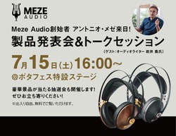 またMeze Audioでは7月15日16時より特設ステージにて製品発表会を予定しており、Meze Audio創始者のAntonio Mezeによる製品発表会と、オーディオライターの岩井 喬氏をゲストに迎えたトークセッションを開催。トークセッション参加無料で、豪華景品が当たる抽選会も予定しているという。