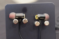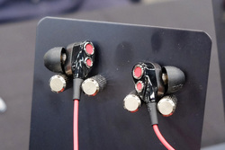 新たなフラグシップとして、16mmのハイルドライバーが搭載されたイヤホン「eamt-0」を展示。ハウジングの素材により価格が異なり、アルミ素材は70万円程度、チタン素材は80万円程度、そして銅素材は日本での価格設定はまだだが、1万ドル程度を予定しているという。