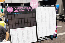 ブースにはヘッドホンカバー「mimimamo」の全カラーラインナップが用意され、実際に試着することもできるようになっていた。また、好評の「ヘッドホン対応表ご協力キャンペーン」も実施。同社のヘッドホン対応表に載っていないヘッドホンをブースに持っていき装着テストすることで、mimimamoがプレゼントされる。本キャンペーンはイベント開催中、常時実施しているとのこと。