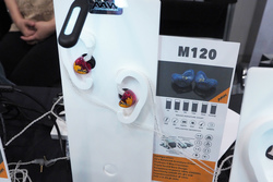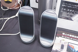 その他、8月までクラウドファンディングで資金調達中のBluetoothスピーカー「DUOECHO」も展示。端末とスピーカー間だけでなく、左右のユニット間もBluetoothで接続する完全ワイヤレス型のスピーカーで、携帯時などには左右のユニットを筒状に組み合わせて収納できる。