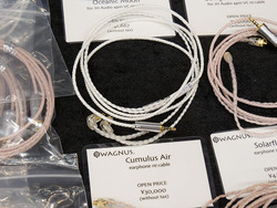 WAGNUS.のブースでは、リケーブルのミドルクラスの新製品「Cumulus Air」を出展(関連ニュース)。旧ソ連時代の軍用ワイヤーを使用しているため、100本ほどの限定品となる。価格はオープンだが、30,000円前後になるとのことだ。