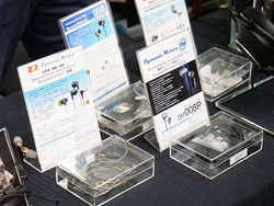 メースのブースでは、ENIGMA ACOUSTICSの電源がいらない静電型ヘッドホン「DHARMA D1000」(関連ニュース)や、Dynamic Motionの世界初の同軸一体型2Wayタイプのイヤホン「DM200H」(関連ニュース)、「DM008」をベースにオールアルミ筐体としたイヤホン「DM008P」(関連ニュース)などを出展・デモを実施している。