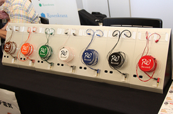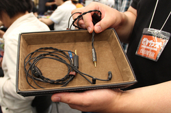 ミックスウェーブでは同社取扱製品を一斉に展開、大勢のユーザーが試聴に訪れていた。新製品として、Beat Audio社のUEカスタムIEM/qdc製品に対応する2pin端子搭載のリケーブル製品を参考出展している。