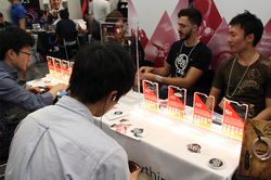 WiseTechは、N純銀と7N-OCC導体を採用したハイブリット仕様のリケーブル“NOBUNAGA Labs HYBRID”シリーズをメインに出展。同シリーズはイヤホン側にMMCX端子を採用しプラグ部が異なる3モデルがあり、3.5mm端子の「村正(むらまさ)」、2.5mm 4極端子の「虎徹(こてつ)」、4.4mm 5極端子の「姫鶴(ひめづる)」が用意される。最近ではイヤホン製品も増え、それに伴ってリケーブルの需要も増えているとのこと。ブースにも多くの人が試聴に訪れていた。