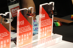ORBのブースでは、ヘッドホンリケーブル「Clear force」シリーズに3.5mm 4極端子を採用したリケーブル製品(関連ニュース)をメインに出展。各イヤホン端子に対応したラインナップを揃えている。7月24日の発売予定で、価格は15,000円〜22,000円前後。ポタフェス会場では先行発売も実施されている。