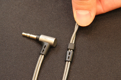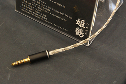 また、先日開催のポタ研でも出展された、JH Audio用の4ピン端子リケーブルを本日も出展。2.5mm 4極/4.4mm 5極モデルの2種類を用意する。展示品の仕様はまだ最終状態ではないが、7月中に発売開始になる予定とのこと。価格は低音調整機構付きのモデルが98,000円前後、無しのモデルが78,000円前後を想定している。