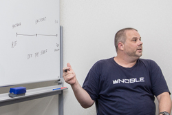 エミライは、7月1日より米Noble Audioユニバーサルイヤホンの国内輸入代理店となった(関連ニュース)。それを受けて、14日にプレス向け説明会が開催。Noble Audioの共同創業者であり製品開発に携わるジョン・モールトン氏が来日し、自身の略歴やNoble Audio製品の特徴、名前の由来について語ってくれた。