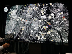 そして番組に合わせて、NHKと資料館が共同で、この約4,200枚の「原爆の絵」全てを超構成画像で記録しデータベース化。タブレット操作で検索することで、8Kモニターに広島の3D地図上に日時・場所情報とリンクさせて表示させるシステム「インタラクティブ8Kビューアー“原爆の絵”」を制作した。