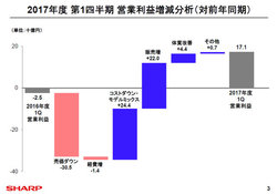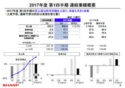 シャープ、'17年度1Qは約145億円の黒字。前年同期の赤字274億円超から業績大幅改善