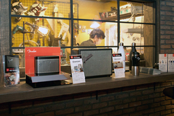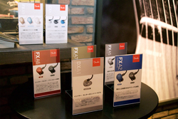 展示会は、都内にあるフェンダーミュージック・バックステージにて開催されている。ホームオーディオ関連製品では、先日発売された同社のギターアンプを模したデザインが特徴的な初のオーディオ再生専用Bluetoothスピーカー「MONTEREY」「NEWPORT」(関連ニュース)を展示。今年6月に発売された6基のBAドライバーを搭載したフェンダーイヤホン最上位モデル「FXA9」やエントリーモデル「CXA1」(関連ニュース)などのイヤホンも展示されていた。