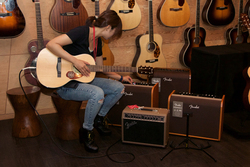 BluetoothスピーカーにもなるWi-Fi内蔵ギターアンプ「MUSTANG GT」シリーズ(関連ニュース)をはじめとするギターアンプや、DJやライブ、商業施設など幅広いシーンで活用できるパワードスピーカー製品も展示。アコースティックギターは近年プレイする人口も増え、フェンダーも力を入れているとのことで、新モデルの他にアコギ専用アンプなども並んでいた。