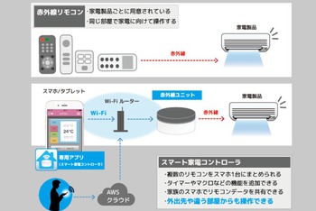 ラトックシステムは、Wi-Fi経由でスマートフォンから家電製品の操作ができるスマート家電コントローラーの新モデル「REX-WFIREX2」を8月10日に発売する。定価は8,640円(税込)。