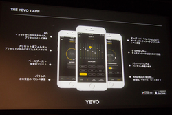 iOS/Android向けに、YEVO専用アプリ「YEVO」も用意。スマートフォンやタブレットなどのデバイスにインストールすることで、イヤホンのバッテリー残量表示、低音のブースト調整、左右の音量バランス調整、オーディオトランスペアレンシー機能のレベル調整などが可能。今後はイコライジング機能やカスタマイズのプリセット保存などの機能追加も予定している。