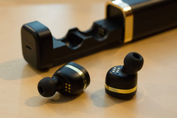 バッテリーチャージャー機能を備えたケースは、600mAのバッテリーを内蔵。45分でイヤホンのフル充電ができる。再生時間は約3〜4時間、通話時間は約3時間となる。ケースについては、約1時間でフル充電が可能。フル充電状態で最大5回のイヤホン充電が行える。1回のケース充電によって、合計で約20時間の音楽リスニングが行えることになる。