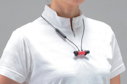 イヤホン部は筐体の先端に直径6mmのドライバーを搭載する「ダイレクトコンタクトマウント構造」。ドライバーは厚さ6.0ミクロンのPETフィルムを使用し、ドーナツ型のネオジウムマグネットでボイスコイルを駆動する外磁型「マイクロETEMドライバー」となっている。ハウジングに内蔵されたマグネットにより、未使用時はイヤホンをくっつけて首からかけておくことができる。