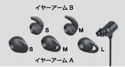 耳のくぼみにフィットする3Dイヤーアームと、S/M/L3サイズのイヤーピースが付属する。3Dイヤーアームは、耳の凹凸にフィットする形状のAタイプが3サイズ、耳介の凹凸に引っ掛ける形状のBタイプ2サイズ、あわせて5タイプとなっており、イヤーアームとイヤーピースを組み合わせることで15パターンの装着感を選ぶことができるのが特徴。