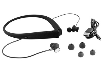 Bluetooth Ver.4.1に対応したネックバンド型のイヤホンで、柔軟なネックバンド部には大型ボタンを採用したリモコンマイクと、大容量のバッテリーを内蔵。約2.5時間の充電で、最長14時間の連続使用が可能。本体にはIPX4の生活防水が施されており、ランニング等でも使用できる。