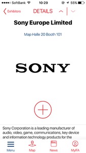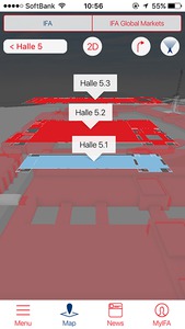 ブックマークしたブース一覧は「my IFA」からも確認可能。各ブースの場所もマップで確認できるので、会場を回る際役立ちます。アプリはiPhone版とiPad版、Android版が用意されています。