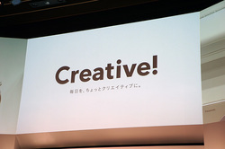この考え方を商品として具現化する際のマーケティングスローガンが「Creative! 毎日を、ちょっとクリエイティブに。」。同社の白物・黒物家電から、「Creative! SELECTION」として選定した製品を積極的に訴求していく。
