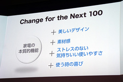 本日のカンファレンスでは、次の100年も、時代の変化に合わせてユーザーに寄り添い、よりよい暮らしの実現を目指すという、これまでと変わらない経営理念で事業を進めることが表明された。同時に、次の100年を見据え、新たな商品開発の考え方も紹介。具体的な新商品の発表も行われた。