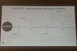 Auro 3Dの成り立ちについても、Baelen氏は説明してくれた。Auro-3Dは2011年に開催されたイベントにて、Auro社と、やはりベルギーの企業でありプロジェクターなどでも知られるBARCO(バルコ社)が発表した。そのとき「イマーシブサウンド」という言葉も提唱された。