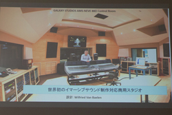 プレゼンテーションでは、Auro社がベルギーに保有しているGalaxy Studioについても詳しく触れられた。本スタジオはAuro社、ひいてはAuro-3Dの本拠地であり、イマーシブオーディオの録音・作成を念頭にして用意された、Baelen氏の言葉を借りれば「世界初の真にインタラクティブなスタジオ設備」である。