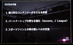 最後に「マスコンシューマーを目指したサービス展開を行ってきたが、それは現実になってきている。DAZNは非常に早いペースで成長しており、加入者数は現段階でも増えている」と自信を見せていた。