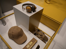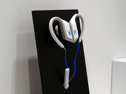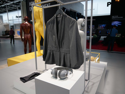 展示方法についても、ただヘッドホンを置くだけでなく、同系色の衣服や靴、カバンなどと組み合わせるなど、ファッション性の高さを大々的にアピールしていた。一方で機能面も高く、1回の充電で20時間近くの再生が行える。