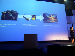 HDR関連ではそのほか、“LUMIX”DC-GH5が、9月末のファームウェアアップデートで、HLGの撮影に対応することも紹介された。世界初の4K/HDR撮影可能な民生用デジタルカメラだ、と小川氏が強くアピールした。