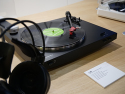 アナログコーナーでは、日本でもすでに展開しているターンテーブル「AT-LP5」「AT-LP3」などを展示。ヘッドホンでアナログレコードの音を確かめることができた。欧州では「オーディオテクニカと言えばアナログ」というイメージを持っている人が多く、それもあってこのような展示になっているのだという。