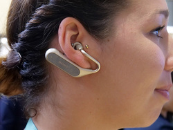 両耳につけて音楽を楽しめるほか、音声アシスタントにもなる本機。早期の商品化を期待したいところだ。