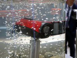 ブースにはVRヘッドセットと同社製ヘッドホン、さらにサブウーファーを内蔵したタマゴ型の椅子を組み合わせたシステムを用意。スティッチングの無いシームレスな全周360度撮影が可能という「360° 4K60p一眼カメラシステム」で撮影したコンテンツを体験することができる。