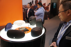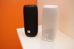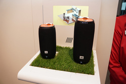 JBLからはGoogleアシスタントを搭載するスマートスピーカー「JBL Link」シリーズが一気に3モデル登場する。3モデル共通の特徴はChromecast built-inに対応するワイヤレススピーカーやオーディオ機器に組み合わせてマルチルームリスニング環境が構築できること。ブースではJBLの同機能に対応するスピーカーと連携してデモを行っていた。