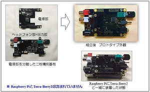 電源部と出力部の2枚の基板で構成されており、Raspberry-Piと「Terra-Berry DAC」または「Terra-Berry DAC2」の基板に追加するかたちで接続する。すべて重ねても高さが抑えられる低背型設計。電源はDC12Vで、オペアンプには±15Vを供給し、直線性の向上を図っている。また、内部で電圧を+5Vに変換し、高音質電源としてTerra-Berry DACやRaspberry Piに供給する回路を内蔵する。