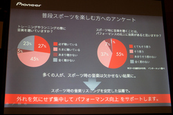 オンキヨー&パイオニアイノベーションズの代表取締役社長である宮城謙二氏も登壇し、「普段はミュージシャンの方とイベントをすることが多いが、スポーツをする際に音楽が側にあることを望む声も多く、この場をお借りして発表会を行わせていただいた」とゴールドジムとの関係をコメント。