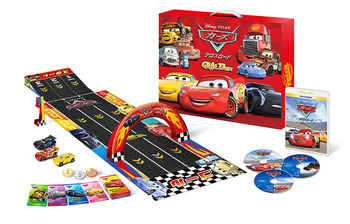 「MovieNEXギフトボックス」は、上記のディスクと、トミカ3台(ライトニング・マックィーンRRCタイプ/クルーズ・ラミレス/ジャクソン・ストーム)、レーシングキット、キャラクターカード30枚セットをギフトボックスに収納した数量限定商品。トミカもレーシングキットもMovieNEXオリジナル仕様となっている。