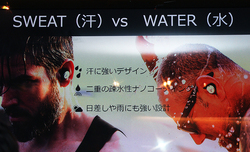 まず防汗性能については、「汗の中には水分以外にも、油分や酸、塩分、その他人それぞれに異なる成分が含まれている」とし、「防水性能として基準とされるIPXは取得していない。IPXは真水でのテストであり、汗に強いとは限らない。本機では汗の侵入を防ぐデザインの採用や、二重の疎水性ナノコーティングにより、長時間使うことによる変色や汗の浸透などへの耐性も高めており、日差しや雨にも強い設計になっている」と語った。