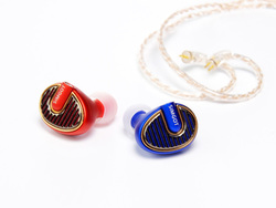 ハウジングは、左側はブルー、右側はレッドカラーを採用。再生周波数帯域は15Hz〜40kHz、感度は101dB、インピーダンスは16Ωで、最大入力は10mW。