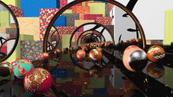 「ころころ」は業界で初めて8K/60pでレンダリングしたCG作品。フル4K/60Pで人気だったコンテンツが、8Kバージョンとして制作されたかたち。日本伝統の京手毬が、江戸千代紙と漆のきざはしを転がり降りる様子を描いた内容で、背景が8Kベースで作り直されている。