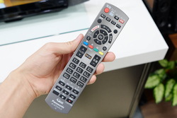また上部中央にはマイクを搭載しており、音声操作に対応。上部右側に備えられたマイクボタンを押すか「マイクオン」と発話するなどして起動させることで、検索や操作を声で行える。「〜〜をYoutubeから検索」といったダイレクト検索も行えるため、文字入力の手間が省かれる。操作用リモコンも付属。