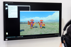 NTTドコモのブースでは、本日発表された8K/60fpsのVR映像視聴システムが出展(関連ニュース)。同社ではVRに関する技術課題として、コンテンツの解像度が2K〜4Kであること、フレームレートはカメラの制約により30fpsが主流であること、そしてヘッドマウントディスプレイはハイエンドのものでも片目が1K程度であるとする。そこで再生負荷を軽減した8K相当品質のVR視聴の実現に向けて、高品質パノラマ映像視聴システムを開発したとしている。