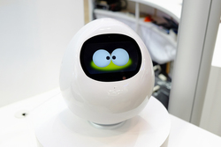 内蔵のカメラにより使用者の表情を読み取り、それにあった表情を返すという仕様で、スマートスピーカーなどと同様に音声認識で買い物などを行うことも想定しているという。また会場のデモ映像では高齢者が1日に何度も同じものを買うことを認識して認知症の可能性を早期に読み取る、といったシーンが流されており、「スマートスピーカーの先にある存在として開発を進めている」という生活に溶け込むロボットの存在がアピールされた。