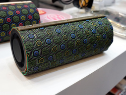 本システムは、独自開発の新素材による「デジタルシート」に、電磁波の照射とカーボン分子の振動を利用して出力することで、細かい凹凸を表現できるというもの。上記のように革製品や繊維製品のような質感を表現でき、ブースではBluetoothスピーカーやヘッドホンの外装に貼りつけてデザインを簡単に換えられるといった活用法を紹介している。