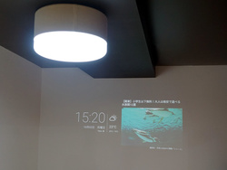 WXGA解像度/700ルーメンのDLPプロジェクターと照明を一体化したもので、照明用ソケットからの給電でプロジェクターも駆動できる。AirPlay/DLNA/Miracastでスマートフォンなどからコンテンツを投映できるほか、内蔵メモリーに絵本読み聞かせ動画など子供用のコンテンツも収録している。