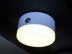 ウェブサイトのコンテンツレコメンドシステムなどで知られるpopInは、プロジェクターとスピーカー、音声認識対応マイクを一体化したAIoTシーリングライト「popIn Aladdin」を出展。