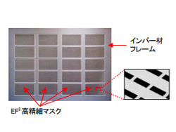また、熱膨張特性に優れるインバー材フレームに、EF2で形成した高精細マスク部を一体化させた有機ELパネル用ハイブリッドマスクを開発することで、熱膨張による変形を抑え、蒸着装置への容易な装着を可能にした。