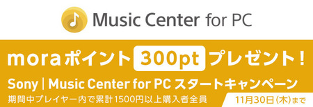 mora、「Sony | Music Center for PC」からの楽曲購入で300ポイントプレゼント